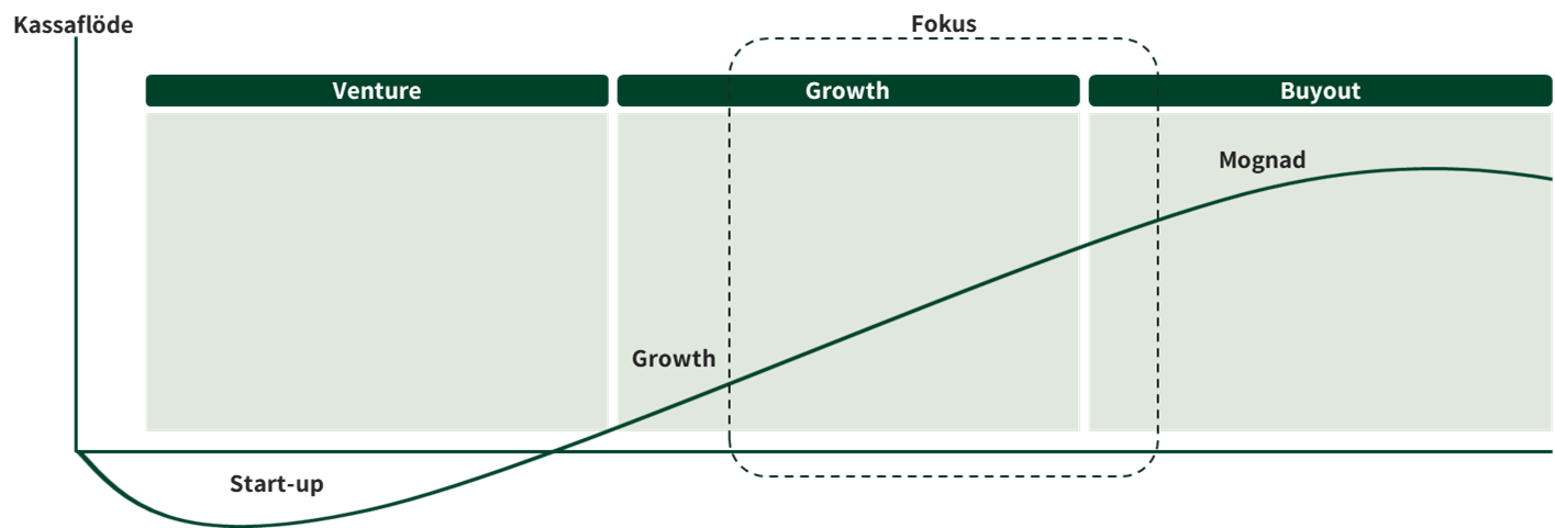 Vi fokuserar på små- och medelstora bolag där vi ser goda möjligheter för värdeutveckling genom att tillföra kompetens och erfarenhet för såväl nationell som internationell tillväxt, både organiskt och genom förvärv. I den här delen av marknaden finns få professionella investerare med rätt erfarenhet, organisation och nätverk för att stötta bolag i expansion.